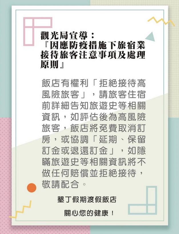 因應防疫措施下旅宿業接待旅客注意事項及處理原則