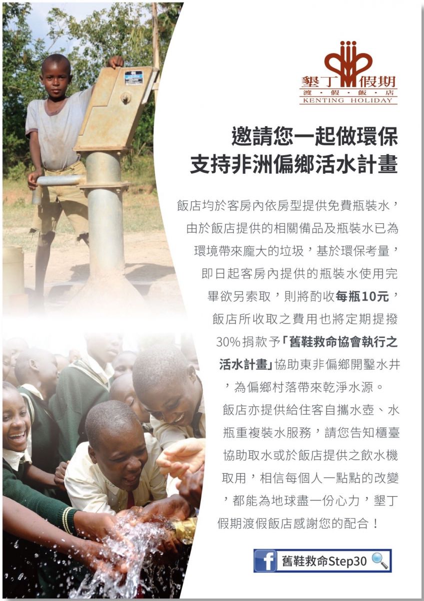 『墾丁假期渡假飯店 邀請您一起做環保/支持非洲偏鄉活水計畫』